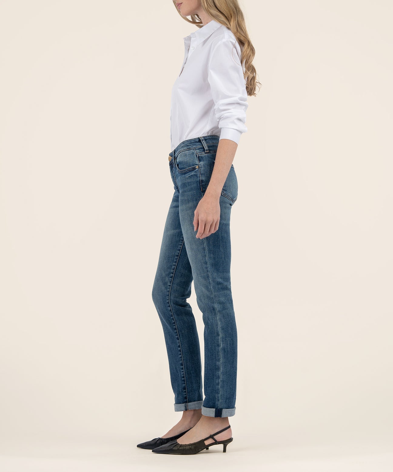Your go-to for laid-back looks, these slim-yet-slouchy jeans are cut from soft, faded stretch denim and can be rolled or worn full length.