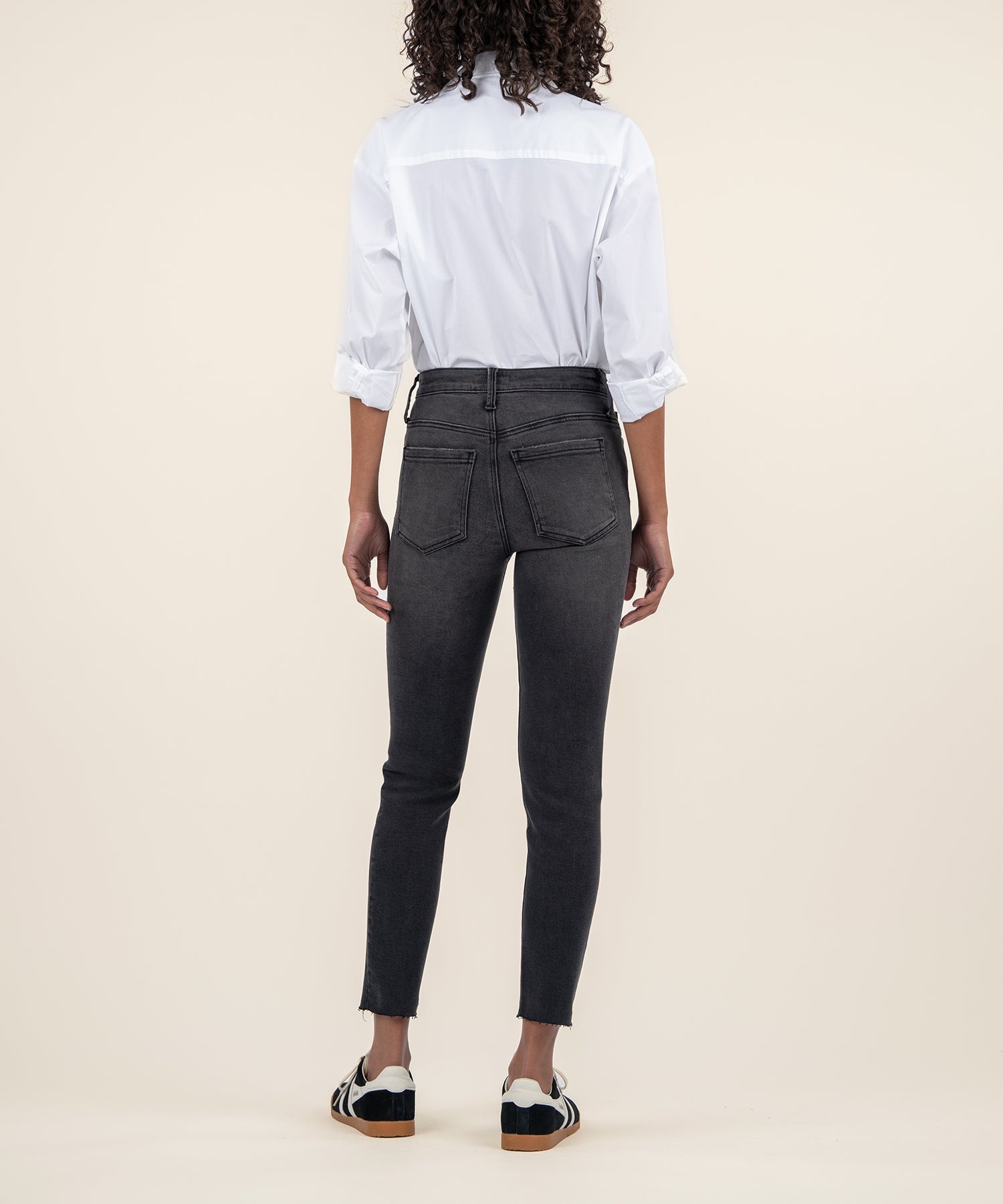 - Designed to fit every body, these shapely skinnies feature a cool grey black wash, raw hems and a smoothing high waist with our fab ab front pockets.