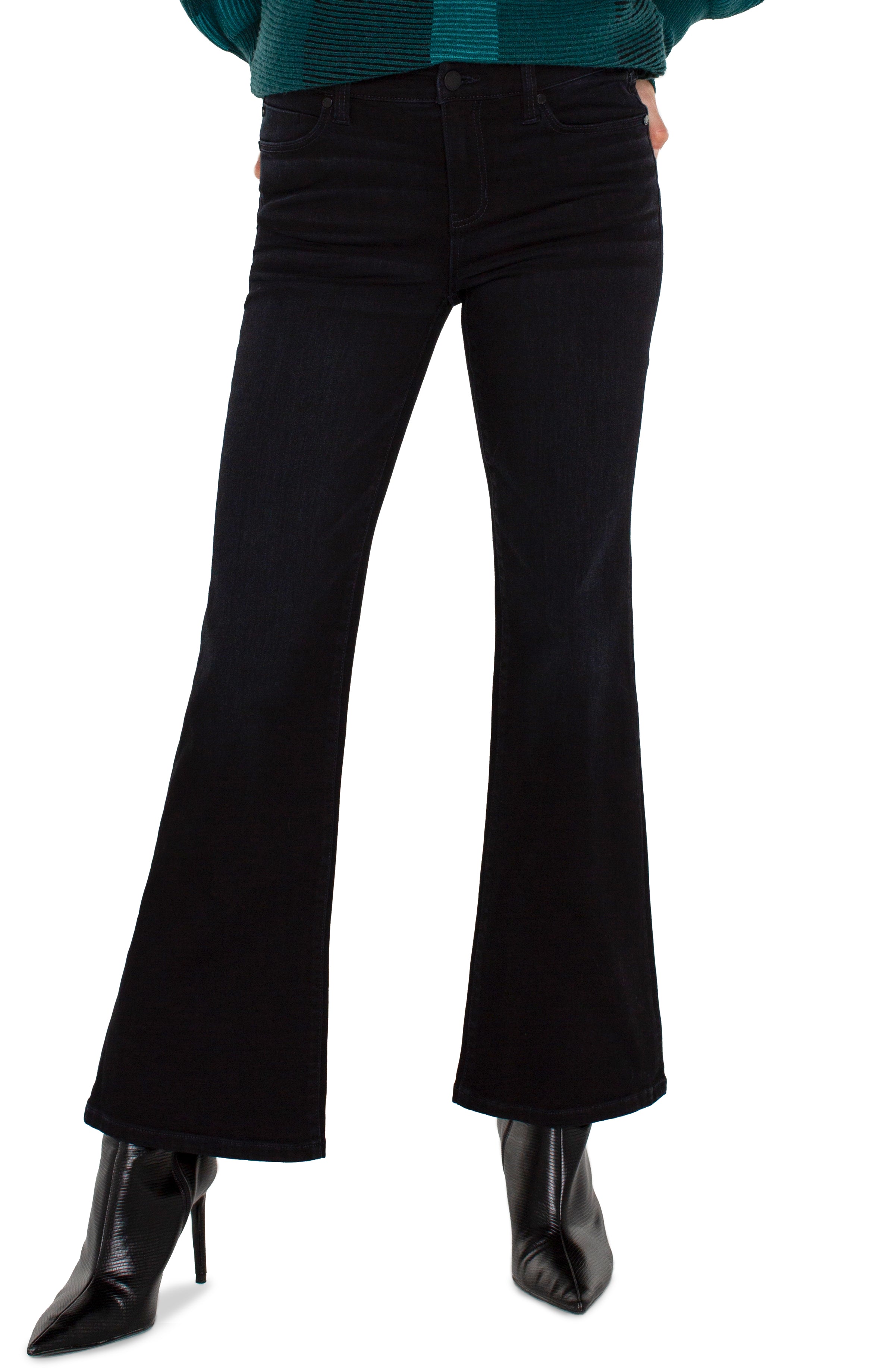 Enhanced your wardrobe in these full length Hannah Flares! A classic style that features a fitted waist and hips with a gradual flare from the knee down. They offer a timeless yet on-trend option for any wardrobe. Pair them with your favorite blouse and boots for a classic look.