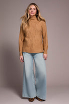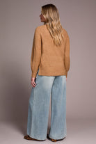 Tribal Puff Sleeve Mock Neck Sweater - Ice Latte