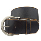 Wide Vintage Leather Belt w/ Horseshoe Buckle - Black